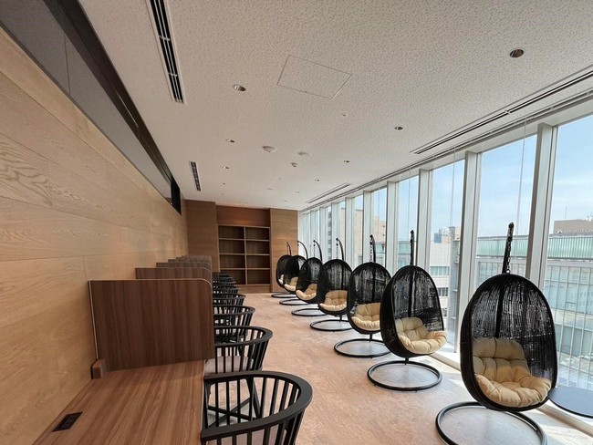 2021年11月に竣工した新しいオフィスの「福岡第1支社」には、1,000席以上の執務スペースがあり、新型コロナウイルス感染予防対策のため、各フロアの扉に自動ドアを採用しました。また、Study Lounge(読書室)やウェブ会議に適した専用ブース席などのエリアも設けています。