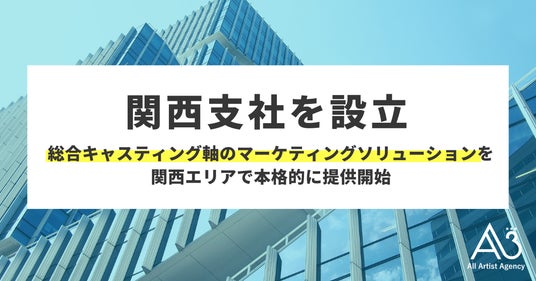 世界の才能をつなぐプロフェッショナルをミッションとする株式会社エイスリー(本社:東京都渋谷区、代表取締役CEO:高橋 太一、以下エイスリー)は、2024年5月1日に関西支社を設立いたしました。関西エリアで、総合キャスティングを軸としたマーケティングソリューションを本格的に提供開始し、関西圏のお客様のマーケティング支援を強化します。