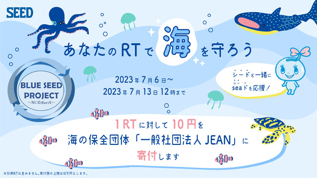 株式会社シード広報公式Twitterアカウント「@SEED_koho(https://twitter.com/SEED_koho)」より発信するキャンペーン実施ツイートをRTいただくと、「1RTに対して10円」を一般社団法人JEANへ寄付いたします。