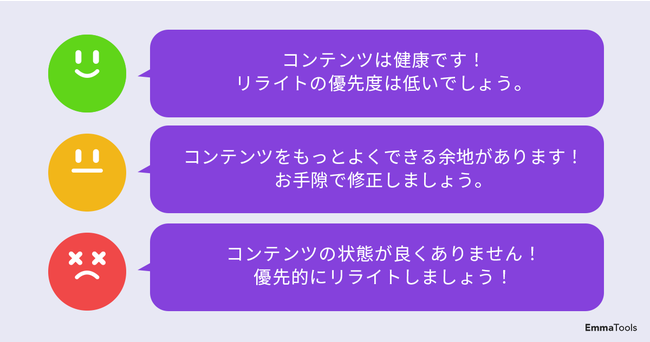 EmmaToolsのユーザーは今回リリースされた「コンテンツ品質管理機能」を活用することにより、SEO対策業務における品質管理を効率化することが可能になります。これによって「どのコンテンツから修正・更新をすれば良いかわからない」や「知らない間に順位が落ちてしまった」という課題を解決する手助けをいたします。