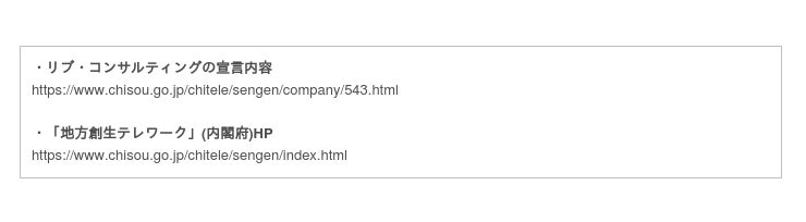 ベンチャー企業や中堅企業など成長企業向けの経営・DXコンサルティングを行う株式会社リブ・コンサルティング(所在地:東京都千代田区、代表取締役:関厳、以下「当社」)は、内閣府・内閣官房が推進する「地方創生テレワーク推進運動」の趣旨に賛同し、テレワークを通じて、都市部から地方への人の流れを加速させるとともに推進運動に参加するため「Action宣言」を行いました。当該宣言が、内閣府・内閣官房に正式に受理され、「地方創生テレワーク」事業のホームページに掲載されましたのでお知らせします。