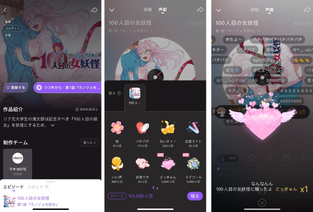 視覚(ボイスドラマ画像)+聴覚(ハイクオリティ音質)+パーソナライズ(弾幕、コメント、ギフティング、再生するタイミングを設定し、好みの速度とトーンを調整可能)の一体化により、創作者サークルから提供のボイスドラマに対して、ユーザーは最高の視聴体験を楽しめることができます。