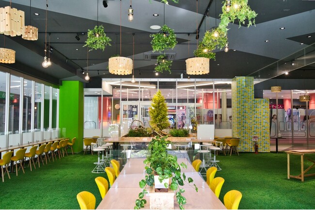 セルフカフェささしまライブ店の特徴は全面人工芝でおしゃれで癒しの空間。