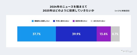 ・2025年の投資を2024年よりも「積極的にしたい」は37.7%となり、「控えたい」13.8%を大きく上回る約3倍