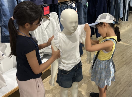 コーディネートを考えながら服を選ぶ楽しさやマネキンに着せる難しさなど、普段できない体験ができて楽しそうでした。