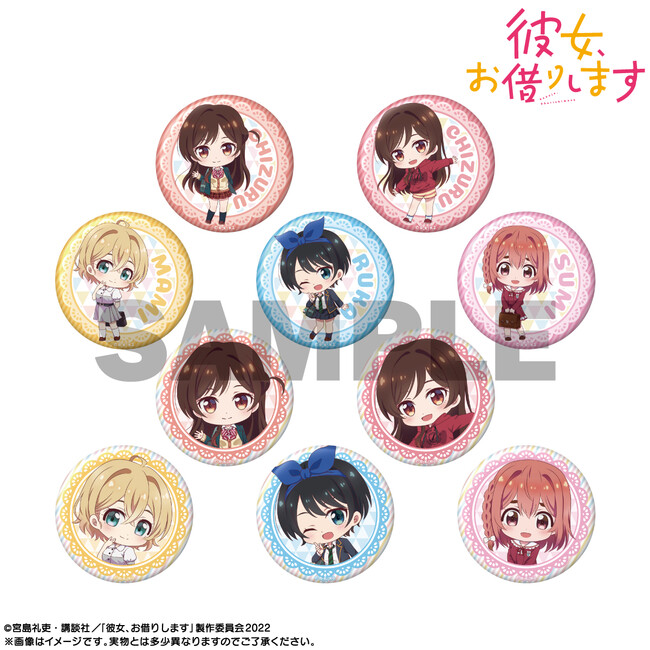 TVアニメ『彼女、お借りします』より描き起こしのデフォルメイラストを使用した「トレーディングBIG缶バッジ」が登場!