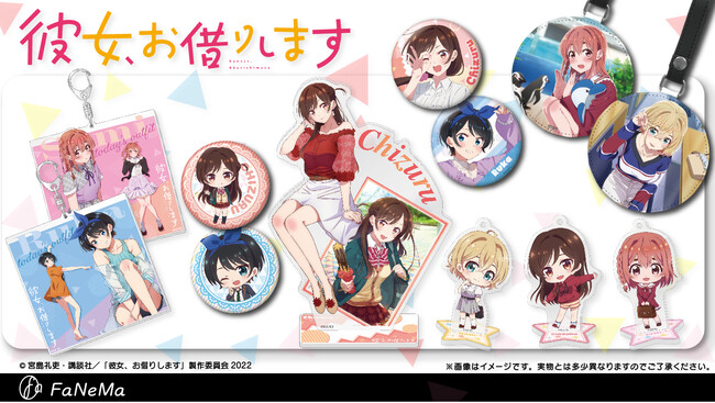 システムサービス株式会社(本社:東京都豊島区、代表取締役社長:田村宗弘)は、アニメ・マンガ・ゲーム作品等のキャラクター商品の企画・製作・販売をする自社ECサイト「FaNeMa」(URL:https://fanema.jp/)にて、TVアニメ『彼女、お借りします』より「BIGアクリルスタンド」「ラゲッジタグ」、新規描き起こしデフォルメイラストを使用した「トレーディングアクスタ」など商品6種を発売いたします。「FaNeMa」でお買い上げいただくと特典もお付けいたします。