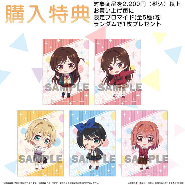 『彼女、お借りします』対象商品を2,200円(税込)以上お買い上げ毎に「FaNeMa限定ブロマイド」(全5種)をランダムで1枚お付けいたします。
