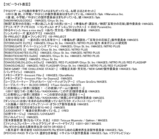 株式会社MAGES.(東京都港区 代表取締役社長:本荘健吾)は、2023年12月20日(水)から2024年1月17日(水)までの期間限定でPlayStation(R)4、Nintendo Switch(TM)用ダウンロード版ゲームが最大95%OFFとなる『MAGES.GAME ウインターセール』をPlayStation(TM)Store及びニンテンドーeショップにて開催することをお知らせします。