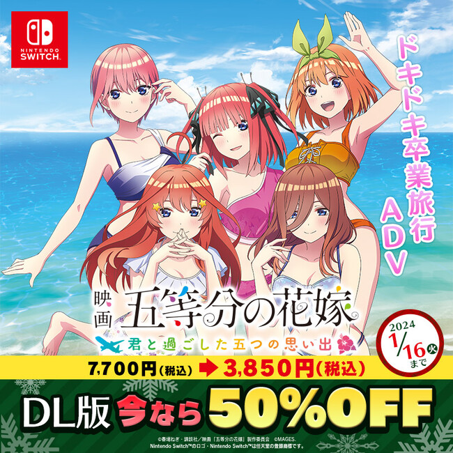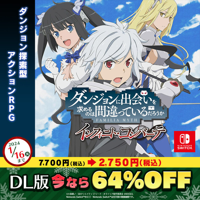 アニメ関連タイトルからは、話題の作品「五等分の花嫁」がセール対象に、2024年にアニメ放送予定の「ゆるキャン△ 」、アニメ10周年を迎えた「やはりゲームでも俺の青春ラブコメはまちがっている。」が対象に、「ダンジョンに出会いを求めるのは間違っているだろうか」もセールに登場します。アニメの枠を超えたオリジナルストーリーを是非、プレイしてください。