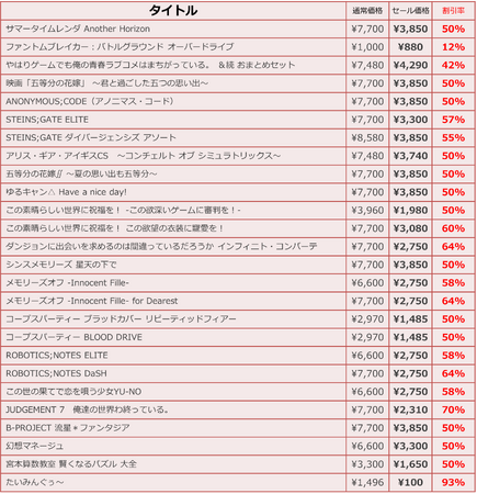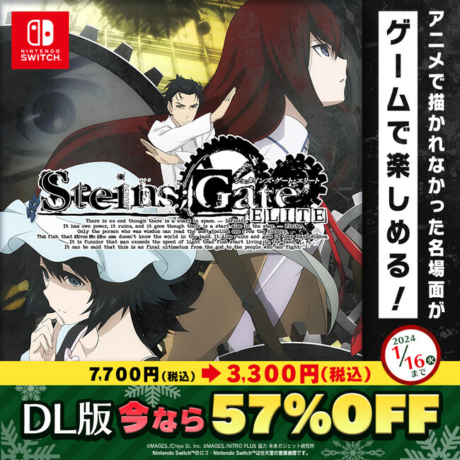 科学アドベンチャーシリーズから、全編をアニメーション映像でプレイできるフルアニADV『STEINS;GATE ELITE』、『STEINS;GATE』派生作品2タイトルと続編『STEINS;GATE 0』の3作品を1本で遊べる『STEINS;GATE ダイバージェンシズ アソート』などがセール対象となっており、シリーズ作品をお得に楽しんでいただけます。