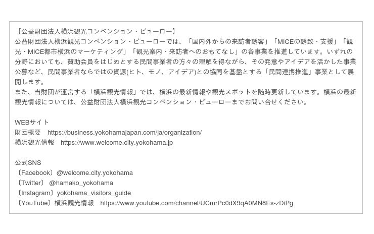 主催 :公益財団法人横浜観光コンベンション・ビューロー