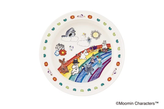ユニバーサルプレート(虹のうえで)虹の上で楽しそうに過ごす「ムーミン」たちを描いたイラストを大きくあしらったプレートです。ワンプレートごはんやパスタ、デザートなど幅広く使える大きさで、子どもたちの絵がテーブルに明るい雰囲気をプラスします。