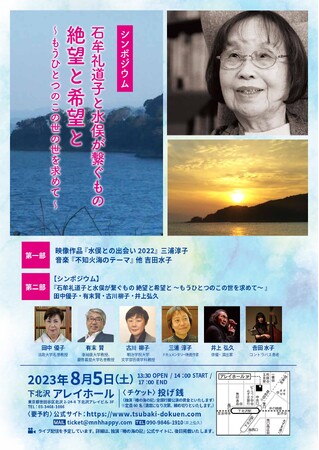 今回のイベントでは、第一部では映像と音楽で水俣の空と海を、下北沢アレイホールにお届けします。第二部では、法政大学名誉教授・田中優子さんらをゲストに迎え、石牟礼道子が作品を通して終生求めつづけたもうひとつのこの世について語り合います。