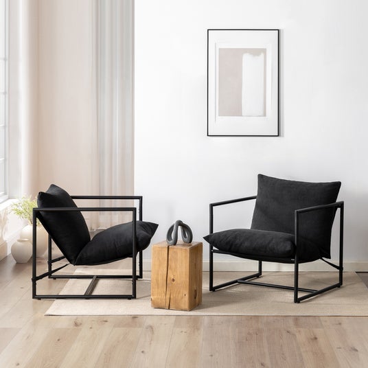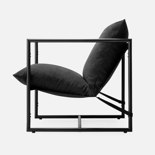 AIDAN LOUNGE CHAIRは、頑丈なスチールフレームに布を配し、クッションを組みわせた、余計なものを省いたシンプル&モダンなデザイン。