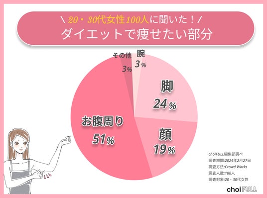 20・30代女性100人にダイエットを始めたきっかけや意識すること、痩せたい部分を聞きました。