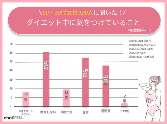 株式会社シアン(本社:東京都渋谷区、代表取締役:籔本崇)の運営するchoiFULL(https://pc.moppy.jp/osusume/ )編集部は、20・30代女性にダイエットに関するアンケートを実施いたしました。今回は、その独自調査の結果を発表します。