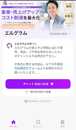 今回ご紹介した「エルグラムのチャネルトーク」は、以下のURLよりご利用いただけます。