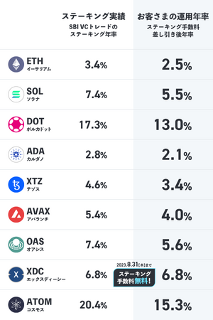 ~OAS、XDCは国内初の付与、ATOMはステーキング対象銘柄内で最高の年率20%超~