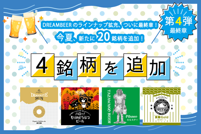 この度、新たに4銘柄がドリームビアに追加されることとなりました。自宅にいながらまるで旅をするように全国のクラフトビールを楽しむことができるプラットフォーム、ドリームビアに参画するブルワリー/取り扱い銘柄は、60ブルワリー139銘柄となりました。