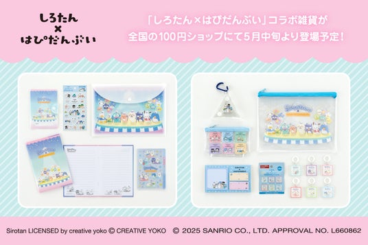 株式会社エイコー(本社:東京都墨田区)は、『Can★Do』を始めとする全国の100円ショップにて、【しろたん×はぴだんぶい】のオリジナル商品を5月中旬より順次展開することをお知らせいたします。