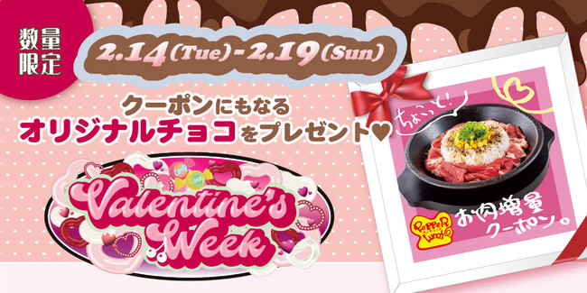 株式会社ホットパレット(本社:東京都江東区、代表取締役社長:松本純男)が運営するペッパーランチは、2月キャンペーン第2弾としてバレンタイン当日の2月14日(火)から19日(日)まで「バレンタインWEEK」を開催いたします。期間中、主商品をご注文のお客様に“ちょこっとお肉増量”クーポン*1にもなる「オリジナルチョコ」をプレゼントいたします。