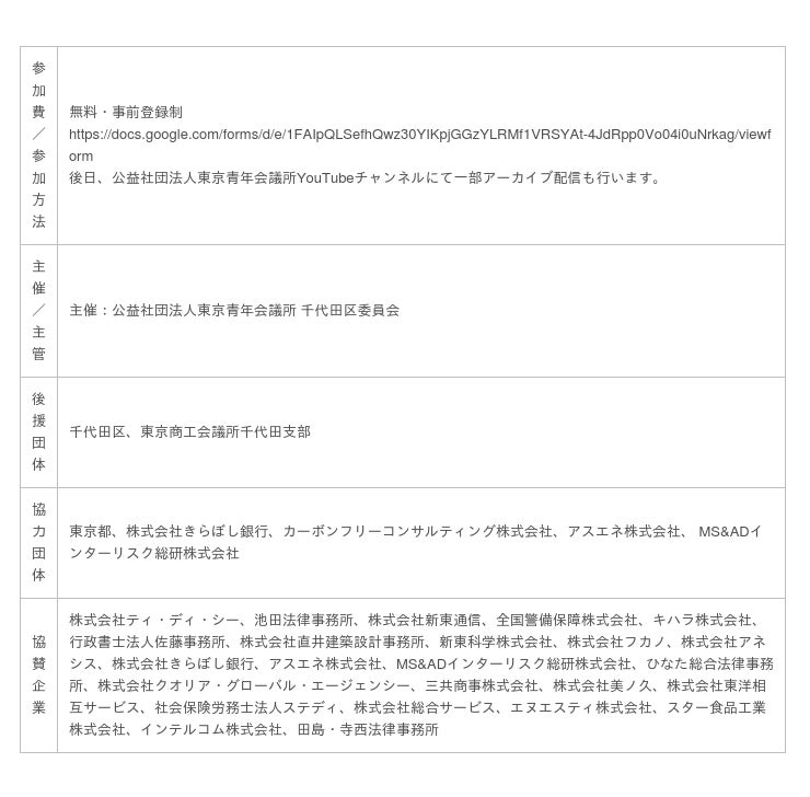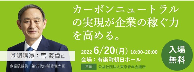 公益社団法人東京青年会議所(所在地:東京都千代田区平河町、理事長:山本健太)は、2022年6月20日(月)18時から「カーボンニュートラルの実現が企業の稼ぐ力を高める」を、有楽町朝日ホール(東京都千代田区有楽町)にて開催します。後日、公益社団法人東京青年会議所YouTubeチャンネルにて一部アーカイブ配信も行います。