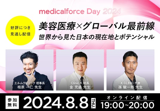 参加者アンケートで多くのご好評をいただいたご登壇者、美容皮膚科エルムクリニック 相原 一仁 先生、Clinic K 金 児盛 先生、X CLINIC 孫 駿一郎 先生による【美容医療×グローバル最前線 世界から見た日本の現在地とポテンシャル】のアーカイブ配信が決定いたしました!