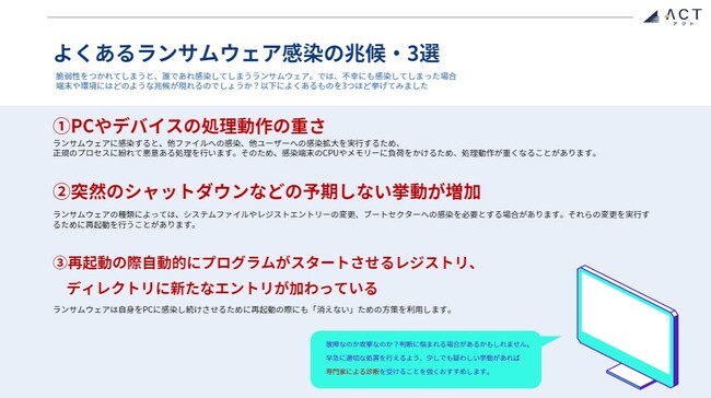 サイバーセキュリティ事業などを行う株式会社アクト(本社:東京都文京区、代表取締役CEO 小林 智彦 、以下 アクト)は、ホワイトペーパー「ランサムウェアの兆候」を公式WEBサイトにて公開しました。