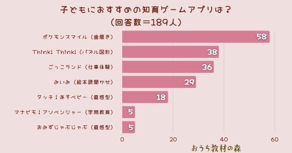 【総括】「子どもにおすすめの知育ゲームアプリは?」とアンケート調査した結果、1位は『ポケモンスマイル(歯磨き)』でした。