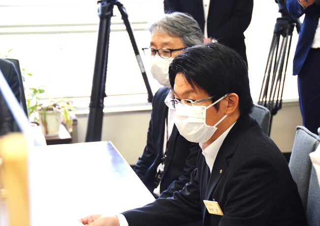 【出席者】 <岩手県> 環境生活部長 福田 直 様、技監兼環境担当技監 佐々木 健司 様、環境生活部副部長兼環境生活企画室長 浅沼 秀行 様、<いわて生活協同組合> 理事長 飯塚 明彦 様、常勤理事兼環境事業推進室長 阿部 慎二 様、<当社> 代表取締役社長 谷村 広和、カスタマー営業本部長 舘 隆一郎