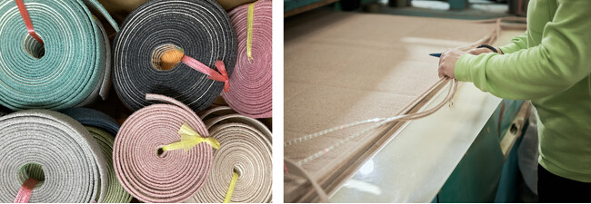 弊社のタイルマットは、大きな原反から製品サイズに合わせてくり抜いているため、マットの端の不要な部分が出てしまいます。