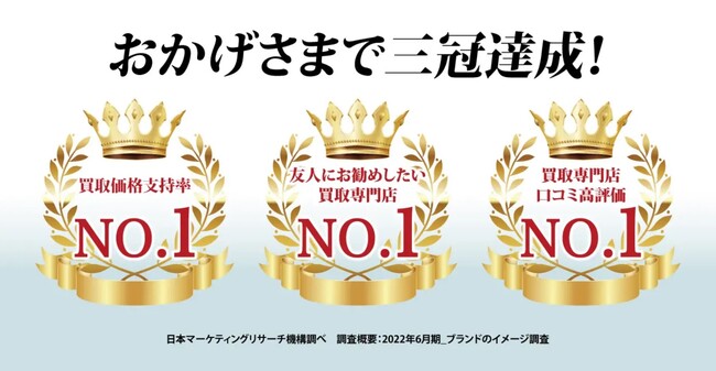 日本マーケティングリサーチ機構が、2022年6月に買取専門店におけるインターネット調査を実施した結果、株式会社エンパワーが運営する買取大吉が『買取価格支持率』『友人にお勧めしたい買取専門店』『買取専門店口コミ高評価』の3部門で第1位となりました。