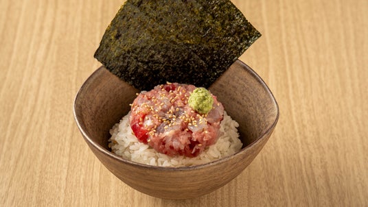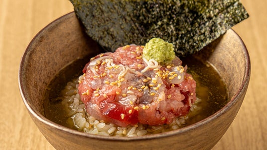 白米の上になめろうをのせた、夜はコースでしか味わえない『寿司居酒屋 番屋』定番のKAI鮮(かいせん)茶漬け。 まずはそのまま、次は海苔で巻いて手巻き寿司風に、最後は蟹鍋のお出汁をたっぷりとかけて。食べ方を変えながらお楽しみください。