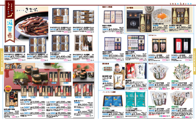 また、おうち時間を楽しんでいただけるよう、ご自宅用に最適なお店こだわりの美味を楽しめるギフトや、全国各地ならではのご当地グルメギフトをご用意しました。平和堂の店舗を展開する府県からは、各府県のご当地ハムを楽しめる「ふるさとじまんのハムギフト」や、「じもとのうまいもの」として、平和堂がおすすめするうまいものを集めました。滋賀県からはあゆの店きむらの湖魚の佃煮や叶匠寿庵、京都府からはとり市老舗、愛知県からはヤマサちくわの詰合せ、福井県からは越前そばなど、バラエティ豊かに取り揃えています。