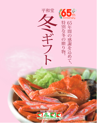 今年の冬ギフトカタログは「65年間の感謝を込めて、特別な冬の贈り物。」と題し、選ぶ楽しさ、贈る幸せ、もらうよろこびにあふれた65周年ならではの特別なギフトをご用意しました。大切な方との「絆」をつなぐ細やかな心づかいを平和堂冬ギフトがお手伝いします。