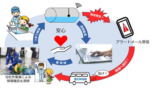 本システムは、現場での異常検知から、クラウドを活用した遠隔監視、さらに清掃対応までを一貫して提供するもので、排水設備の安定稼働と計画的・効率的な維持管理に貢献します。