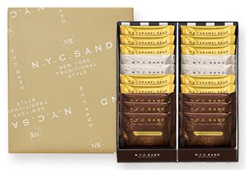 N.Y.C.SANDそごう横浜店限定で「N.Y.メープルウォールナッツキャラメルサンド2個入」、「N.Y.C.S.ギフトボックス10個入」を販売いたします。ちょっとしたプレゼントや少しずついろいろな種類をお楽しみなりたい方へおすすめです。