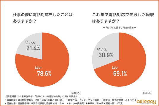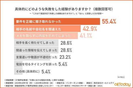 株式会社オールトゥデイ(本社所在地:埼玉県さいたま市)は、IT業界従事者を対象に、【IT業界編】「仕事における電話の失敗」に関する調査を実施しましたので、その結果を公表します。