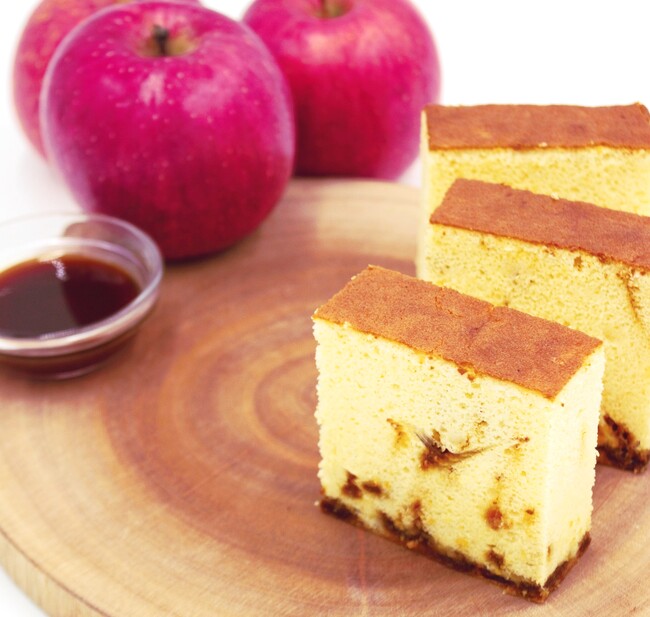 すりおろした北海道産りんごと生クリームを贅沢に使い、焼き上げたりんごのカステラに相性の良い