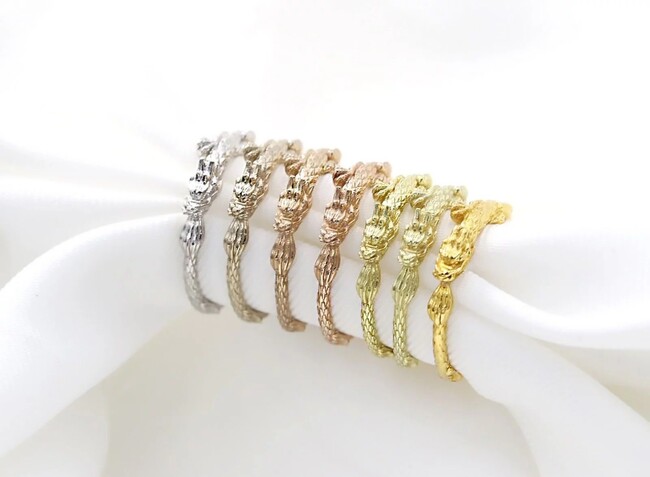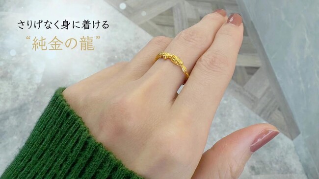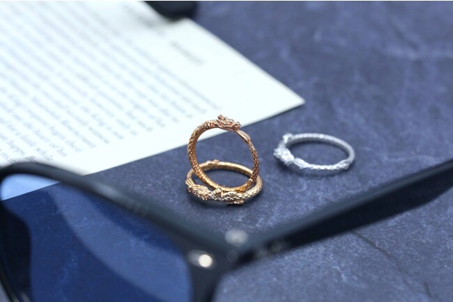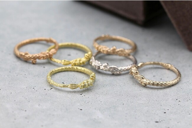 龍のリングと言えば、大きかったりゴツゴツした男性的でカッコイイものが多い中、JUNGOLDでは女性でも「可愛く、お洒落に、さりげなく」着けられる、デイリー使いの出来る華奢な龍のリングを目指しました。