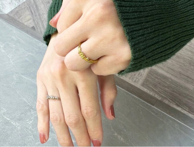 また、メンズサイズは号数によって細めのタイプと太めのタイプの2種類のご用意です。デイリーに使えるリングですので服装問わず身に着けて頂けます。