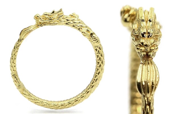 「金、黄金、赤金、青金、白金、桃金、茶金」珍しい7色の地金のイケメン龍リング!