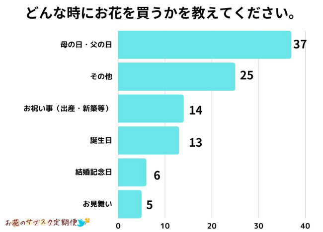 「どんな時にお花を買うかを教えてください」とアンケート調査した結果、1位は『母の日・父の日』でした。