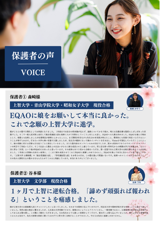 2021年創業の総合型選抜入試・学校推薦型選抜入試の老舗EQAO。オンライン校または本校舎からお選びいただけます。自己分析から、実績づくり、小論文、プレゼンテーション、面接、グループディスカッションなど、全てをプロの講師陣と一緒に対策していきましょう。※EQAOでは、受験資格となる英検の対策も専門で行っておりますので、推薦入試対策と並行して対策可能です。お問合せお待ちしております。