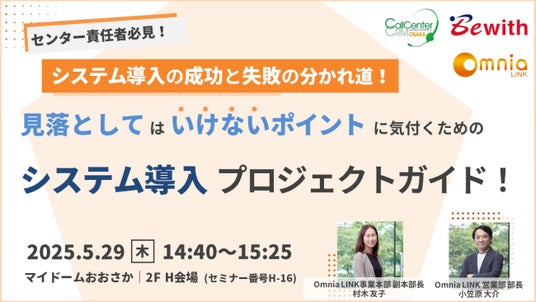 ビーウィズ株式会社(本社:東京都新宿区、代表取締役:飯島 健二)は、2025年5月28日(水)~29日(木)に大阪にて開催される「コールセンター/CRM デモ&コンファレンス2025 in 大阪」に出展いたします。また、同会場にて開催される「事例&ソリューションセミナー」に登壇いたします。