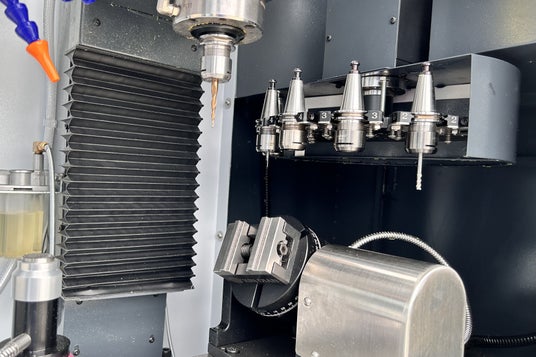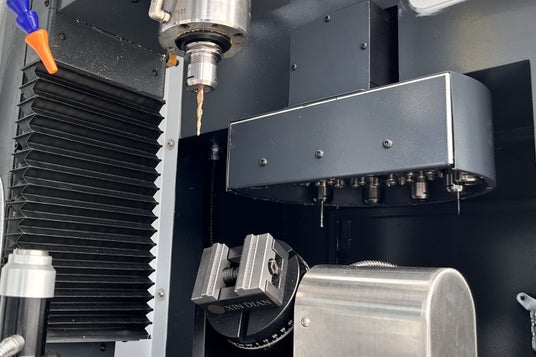 今回のアップデートにより搭載することが可能になったATCユニット(オプション)は、最大6本の工具(最大Φ12mmまでの切削工具に対応)をストックすることができます。これにより、加工内容に合わせて様々な工具をセットすることができるようになりました。