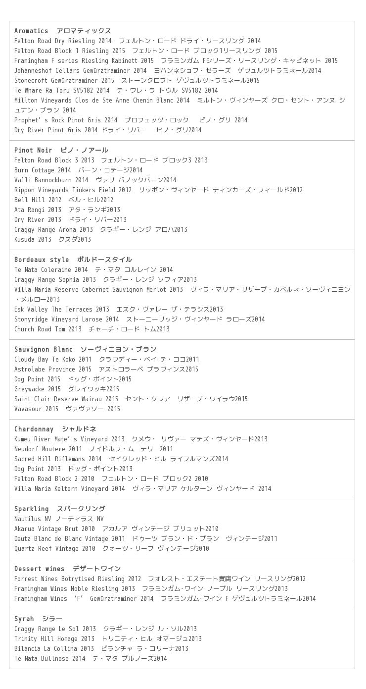 「ニュージーランド産 優良ワイン 2016」