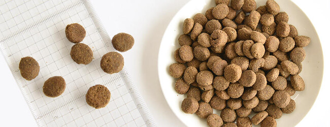 “もっと大きなサイズがほしい”の声に応えて / 生肉100%使用で嗜好性の高いオリジナルフード「POCHI ザ・ドッグフード ベーシック(ML粒)」