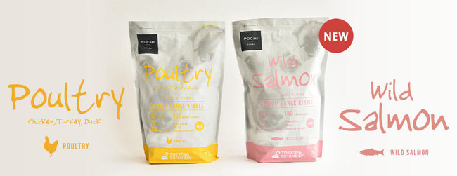 味は、『3種のポルトリー』(チキン生肉、ターキー生肉、ダック生肉の3種)と、DHA・EPAが豊富な生サーモンを使用した『ワイルドサーモン』の2種類です。